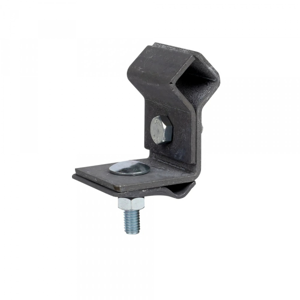 Предназначен для закрепления прута токоотвода к фальцу кровли, выступу листового металла, части водостока или других плоских поверхностей края кровли. Поворотные пластины держателя позволяют крепить прут токоотвода под различными углами. Болтовое соединение обеспечивает жесткое крепление проводника. Непременной частью молниеотвода является токоотводящий провод. Установка этих держателей на плоскую поверхность - это дело относительно несложное, но при невозможности добраться до стены или крыши возникают определенные сложности. Выходом из этой ситуации является установка фальцевого держателя прута. Как следует из названия, этот держатель крепится к фальцам кровли, выступам металла, частям водостока или иным плоским металлическим выступам.
