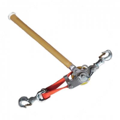 Предназначена для изменения тяжения проводов воздушных линий электропередач, оптоволоконных линий связи, тросов, а также с целью подъема груза по вертикали в пределах длины стропы лебедки посредством дополнительных устройств. Представляет собой грузоподъемный механизм с крюками с обеих сторон, таль которого выполнена из нейлоновой стропы, приводной барабан выполнен из металлической обоймы и диэлектрических щек, снабжена блочным механизмом, что позволяет увеличить тяговое усилие.  Использование лебедки допускается с блоком и без. Работа без блока допускается, при условии демонтажа болтового соединения блока и перестановки тали на основной крюк. Управление лебедкой осуществляется с помощью металлической рукоятки, которая соединена с храповым механизмом. Механизм оснащен тремя скоростями — нейтраль (блокирует заданное тяжение), основная (производит натяжение тали), реверс (снижает тяжение тали). Крюки имеют подпружиненный ограничитель, во избежание соскальзывания крюка с закрепляемой поверхности. Крюки устойчивы к механическим нагрузкам и имеют защитное антикоррозийное покрытие. Большая часть элементов конструкции выполнена из композитных - диэлектрических материалов, обеспечивая дополнительную защиту персонала, при производстве работ под напряжением.