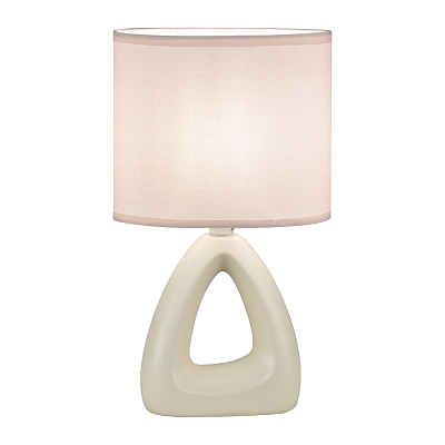Настольный светильник с питанием от сети 220В. Материал корпуса - керамика, абажур из ткани. Цоколь Е14, может использоваться с лампами накаливания, светодиодными лампами. Длина кабеля 1,3м, выключатель на кабеле питания, цвет кабеля белый. Высота 30см, овальный абажур 17х10 см.