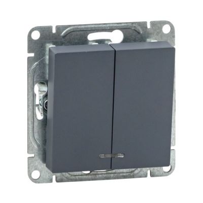 Механизм выключателя, двухклавишный, с подсветкой, графит Эпика EKF